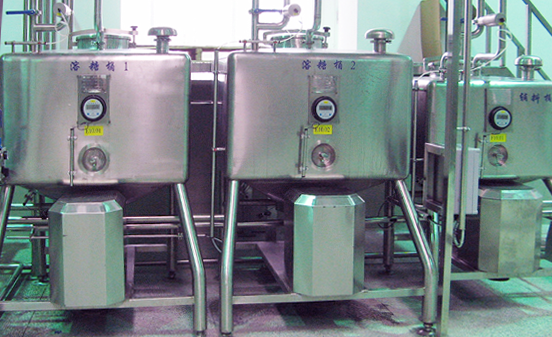 Питатель сахара,оборудование для растворения сахара,оборудование для стерилизации сиропа,оборудование для фильтрации сиропа и охлаждение,бак для инвентаря сиропа.Иногда сироп должен быть обработан дегазацией.Типичная технология растворения: нагревать сахар под 85 граудов за 10 минут,потом охлаждать по частям до 40 драгусов или ниже.